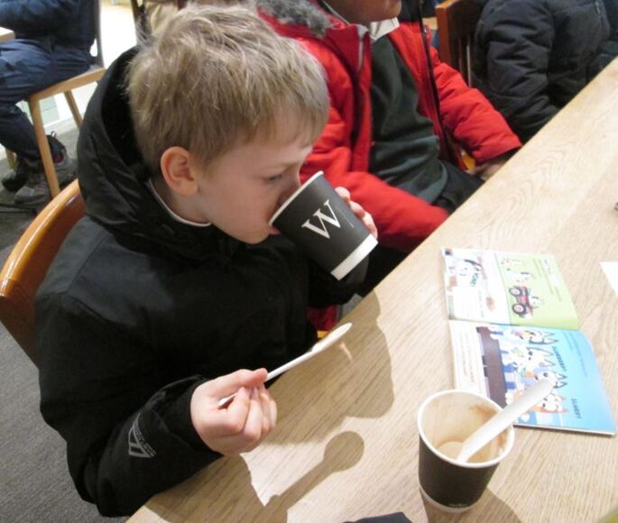 The children had the chance to spend their World Book Day vouchers on a new book just for them before they headed upstairs to read enjoy their new books over a delicious hot chocolate kindly donated by Waterstones.